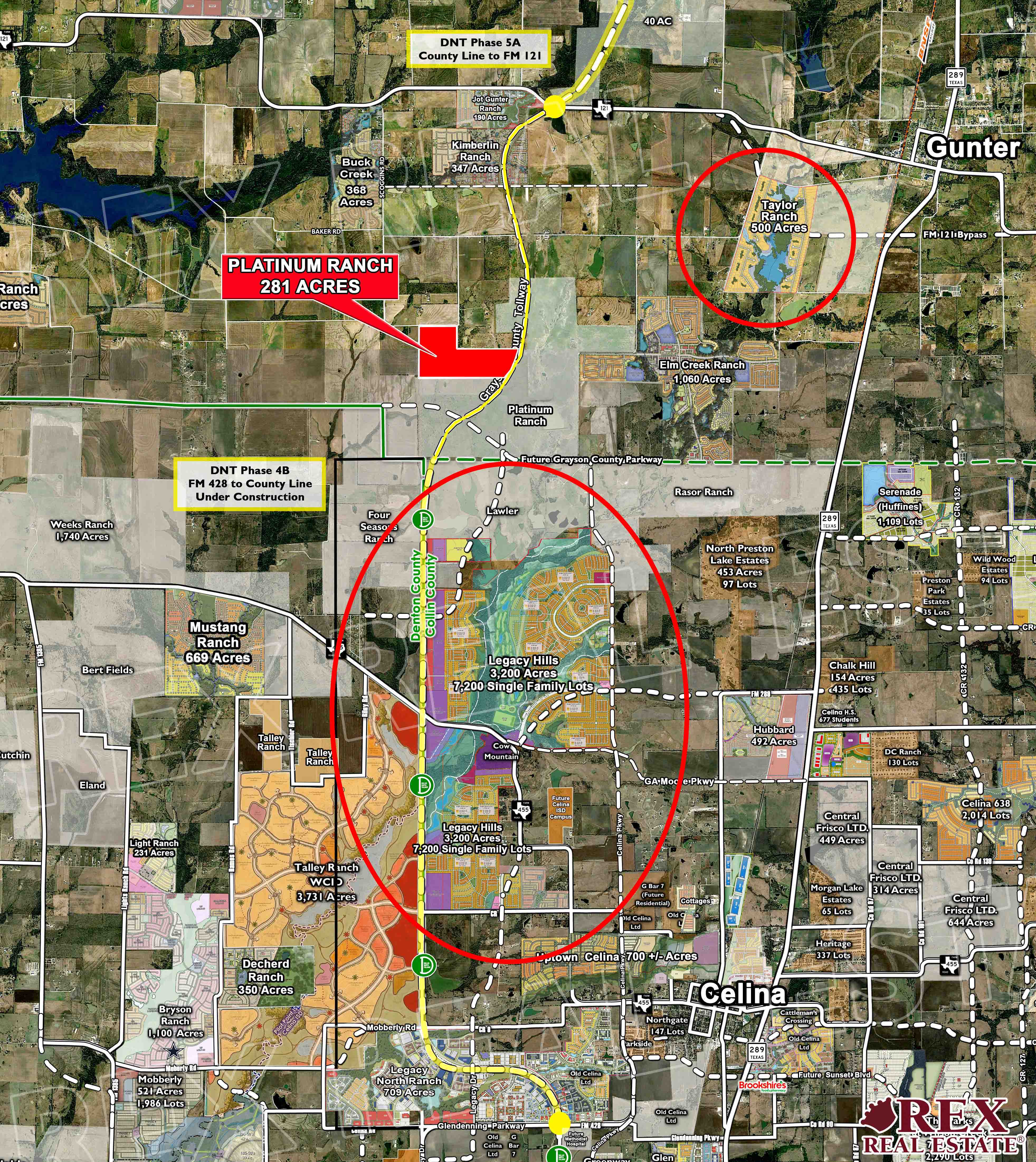 The 281-acre Platinum Ranch property is southwest of the Grayson County town of Gunter and along the future route of the Dallas North Tollway.